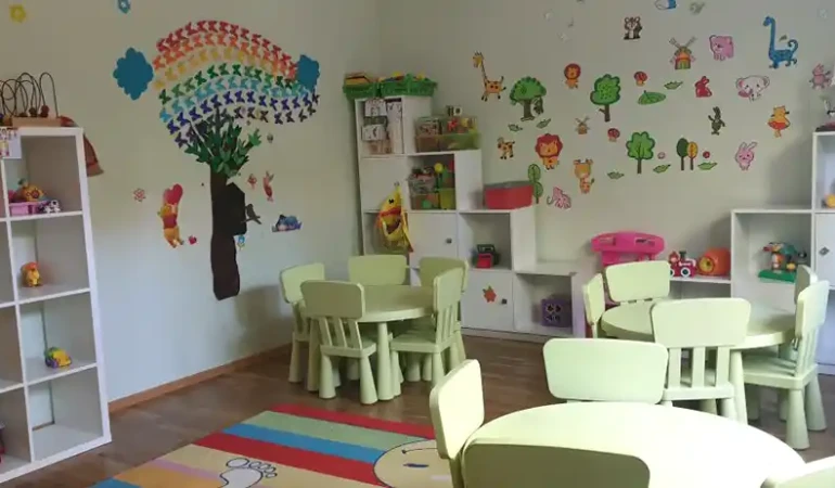 Structura sălilor: săli de grupă, sală multimedia, sală de sport, sală de mese, cabinet metodic, sală conferințe, cabinet medical, izolator, săli de baie pentru copii, sală de baie pentru adulți, bloc alimentar (conform standardelor de siguranță si igienă alimentară).